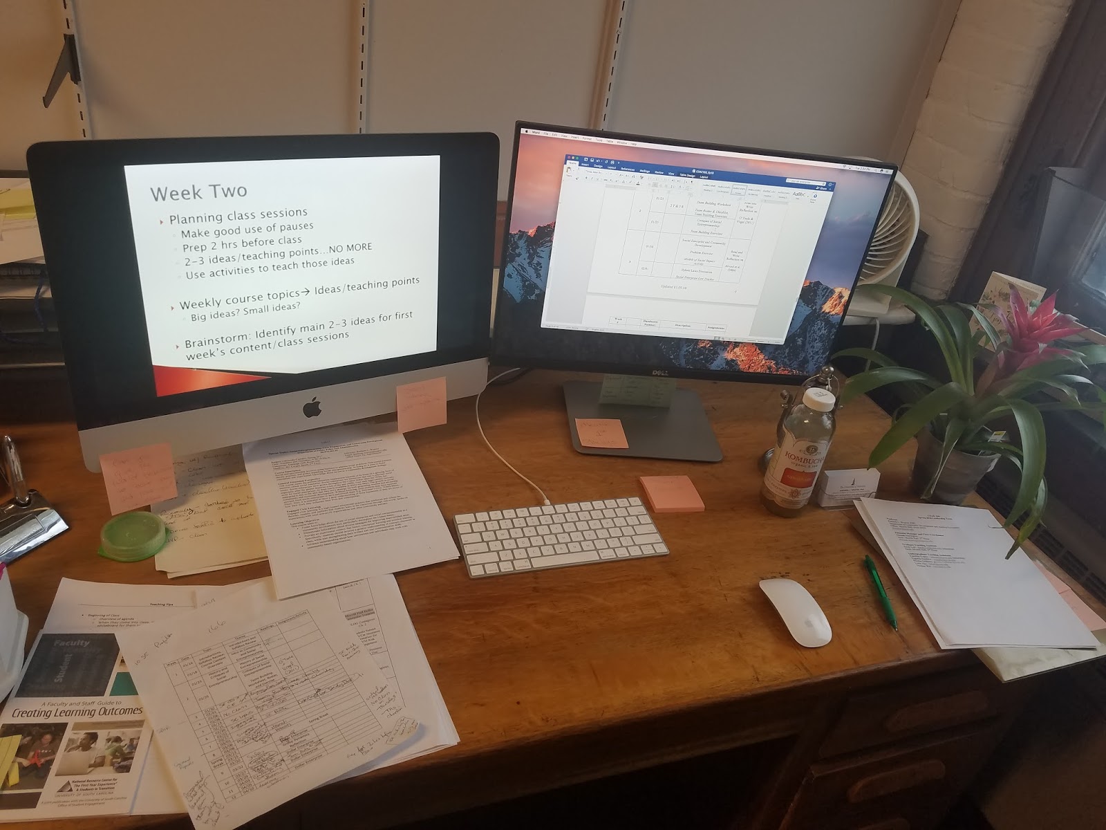 I alternate between home and office. Currently, as I type, I am at my Red River College office but I have a PC laptop here which I hate. I much prefer working on my Mac. My workspace is really uninteresting as it is just a desk and a computer and not much of a view.