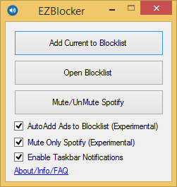 After a bit of looking around on the internet, I found EZBlocker. Just like Blockify, EZBlocker is an ad-muting little helper, that makes sure you won't get disturbed when an ad pops up but simply brings a pause in between two tracks, muting the ad into the background. EZBlocker is incredibly easy to use, and is by now a standard feature on my laptop. Highly recommended if you work with music!